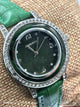 Women's Blue Watch with Ceramic Dial Zircon Bezel Leather Strap