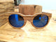 Handmade glasses made entirely of wood skates in brown color and various colors with high resistance to moisture and weather conditions in combination with gray polarized lens.